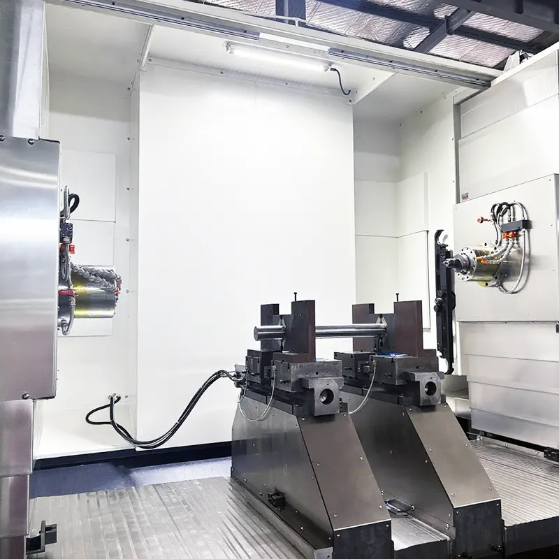 Machine tool feed axes include six-axis coordinate control for X/Y/Z and X1/Y1/Z1, driven by servo motors. This enables one-time clamping of various shaft-type parts while simultaneously completing machining processes such as milling, drilling, and tapping on both end faces. It offers high precision and high production efficiency, making it suitable for batch production of shaft-type components.