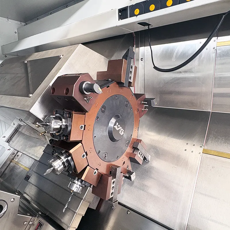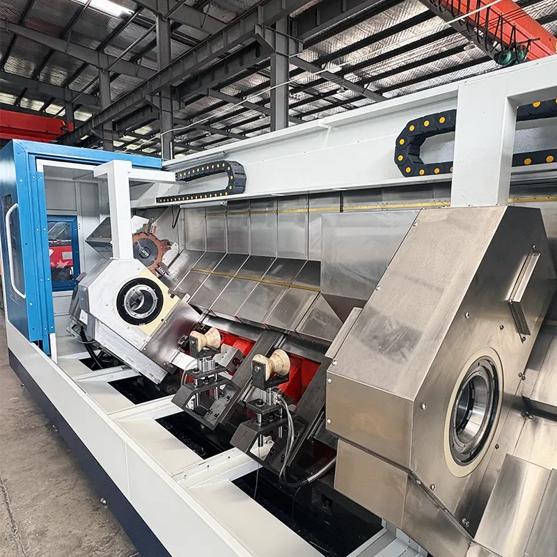 This series of CNC double head lathes is an efficient and high-precision new type of machining equipment, mainlyl used for mass production and processing of long axis and pipe parts. The work piece can be clamped in one go to complete turning and milling at both ends at the same time.High quality re
